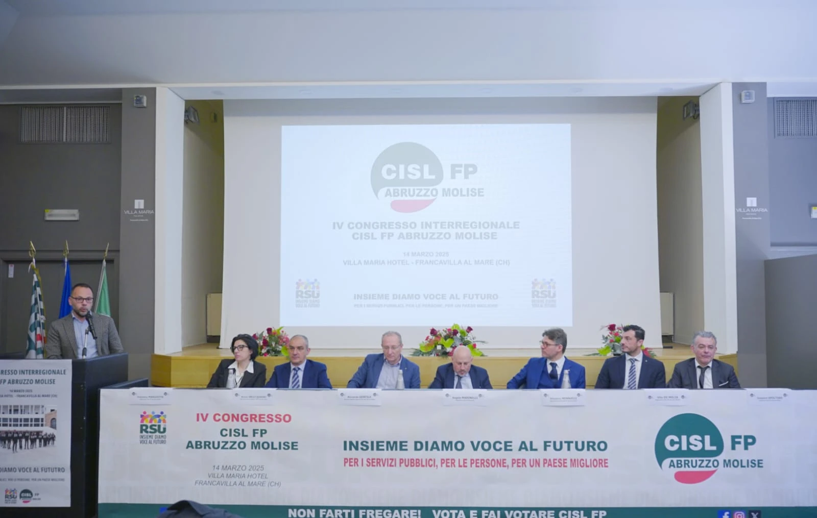 La CislFp ha sempre dimostrato il senso di responsabilità ai tavoli negoziale regionali e nazionali perché per la Cisl la partecipazione e il confronto sono gli strumenti utili a dare risposte certe ai lavoratori e lavoratrici della pubblica amministrazioni e del mondo dei servizi pubblici e privati. In questi anni, nonostante le tante difficoltà, siamo riusciti grazie ad un dialogo costante a rafforzare l'azione sindacale della #Cisl nel settore pubblico strategico per garantire una società equa ed inclusiva senza lasciare nessuno ai margini. Diamo voce al futuro per le persone e per un Abruzzo e Molise migliore.” E’ quanto ha affermato il Segretario Generale Aggiunto della Cisl, Riccardo Gentile al Congresso della CislFp AbruzzoMolise che ha confermato Vincenzo Mennucci alla guida della federazione insieme a Bruno Delli Quadri, Segretario Generale Aggiunto. Sono stati rieletti in segreteria Vito Di Milia, Gaspare Spoltore, Dolantina Margiotta